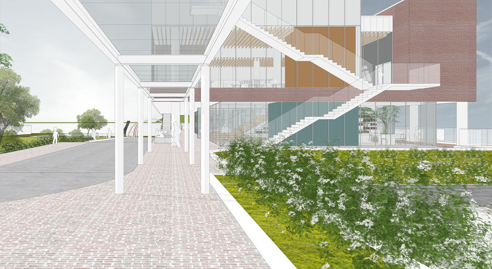 어귀마당-올레마당-올레길-오름쉼터-상산마루-하늘마당으로 이어지는 동안 자연스럽게 걷고, 쉬고 , 노는 과정이 포함된다. 교사동과 주 프로그램(다목적체육관과 식당) 사이에 완충공간으로서 외부공간과 연계된 공유공간을 계획한다.